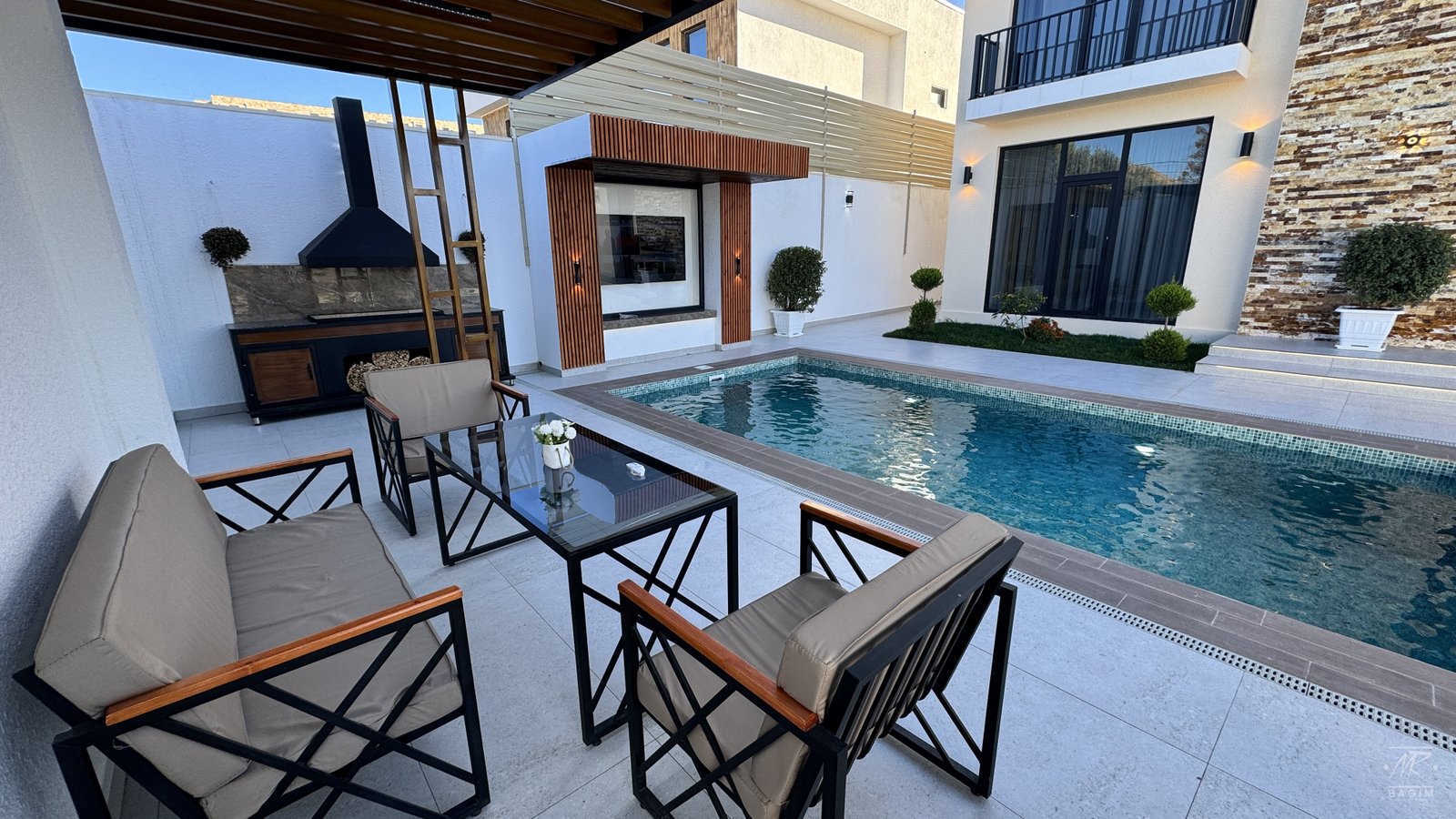 Merdekanda, Xalca Restoraninin arxasi, meshhur H. Tagiyev kucesinde, merkezi yola cox yaxin ve prestijli mekanda yerlesen bu yeni insa olunmus bag evi hem yasayish, hem de istirahet ucun ideal secimdir.