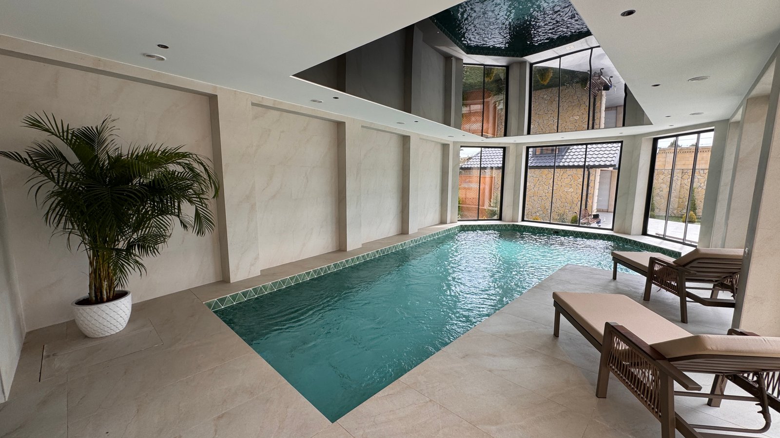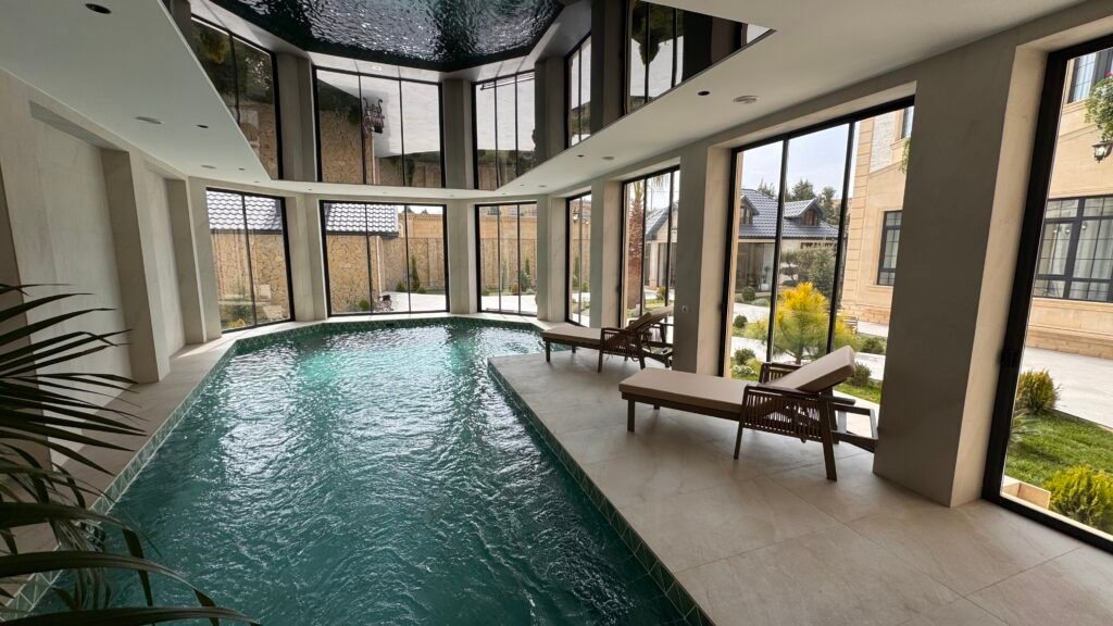 Evde qapali hovuz movcuddur. Hovuza hem heyetden, hem de evin daxilinden girmek olur. Hovuz zonasininda hamam otagi ve soyunma sahesi var.