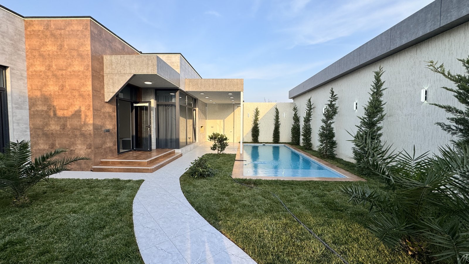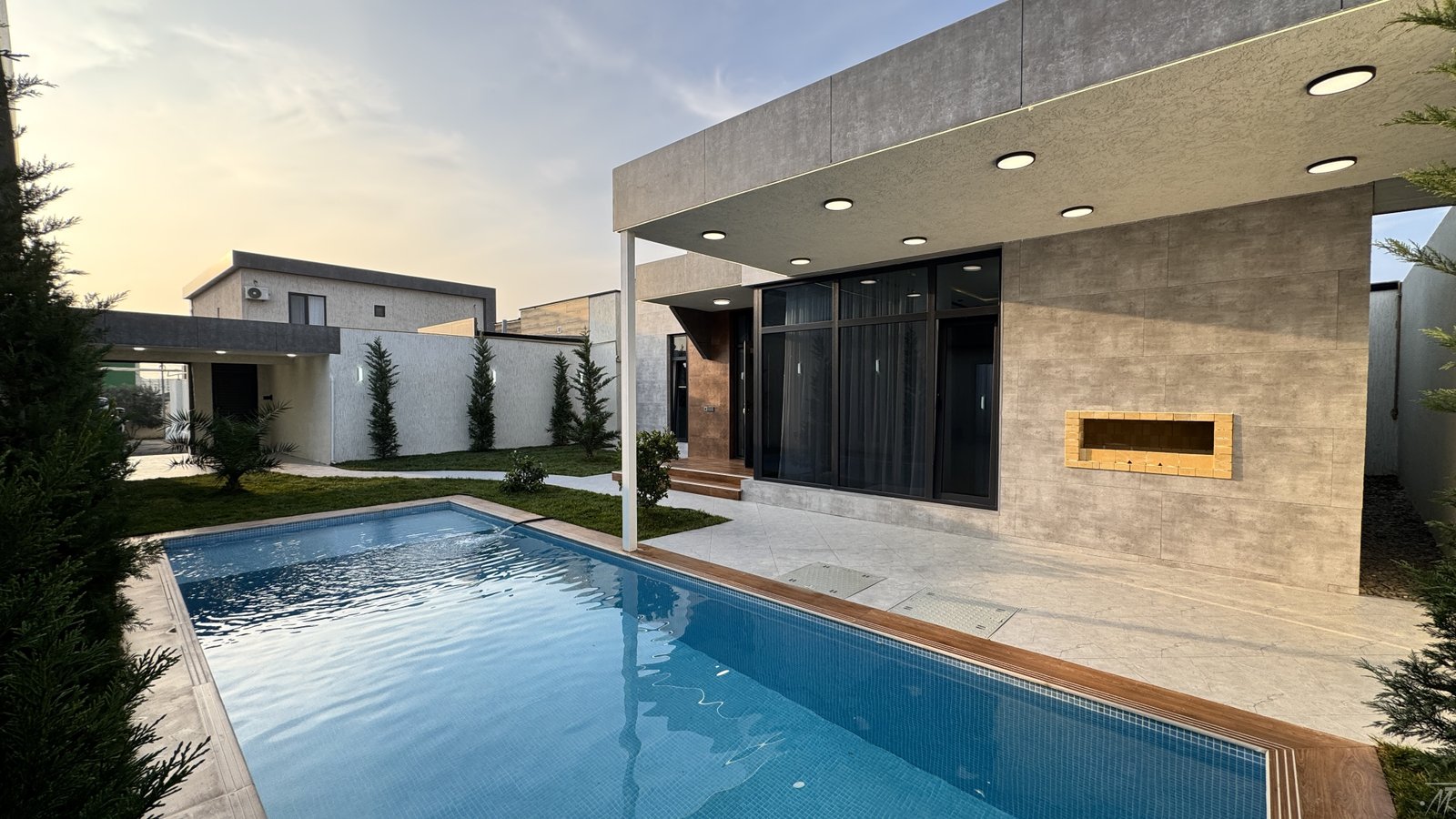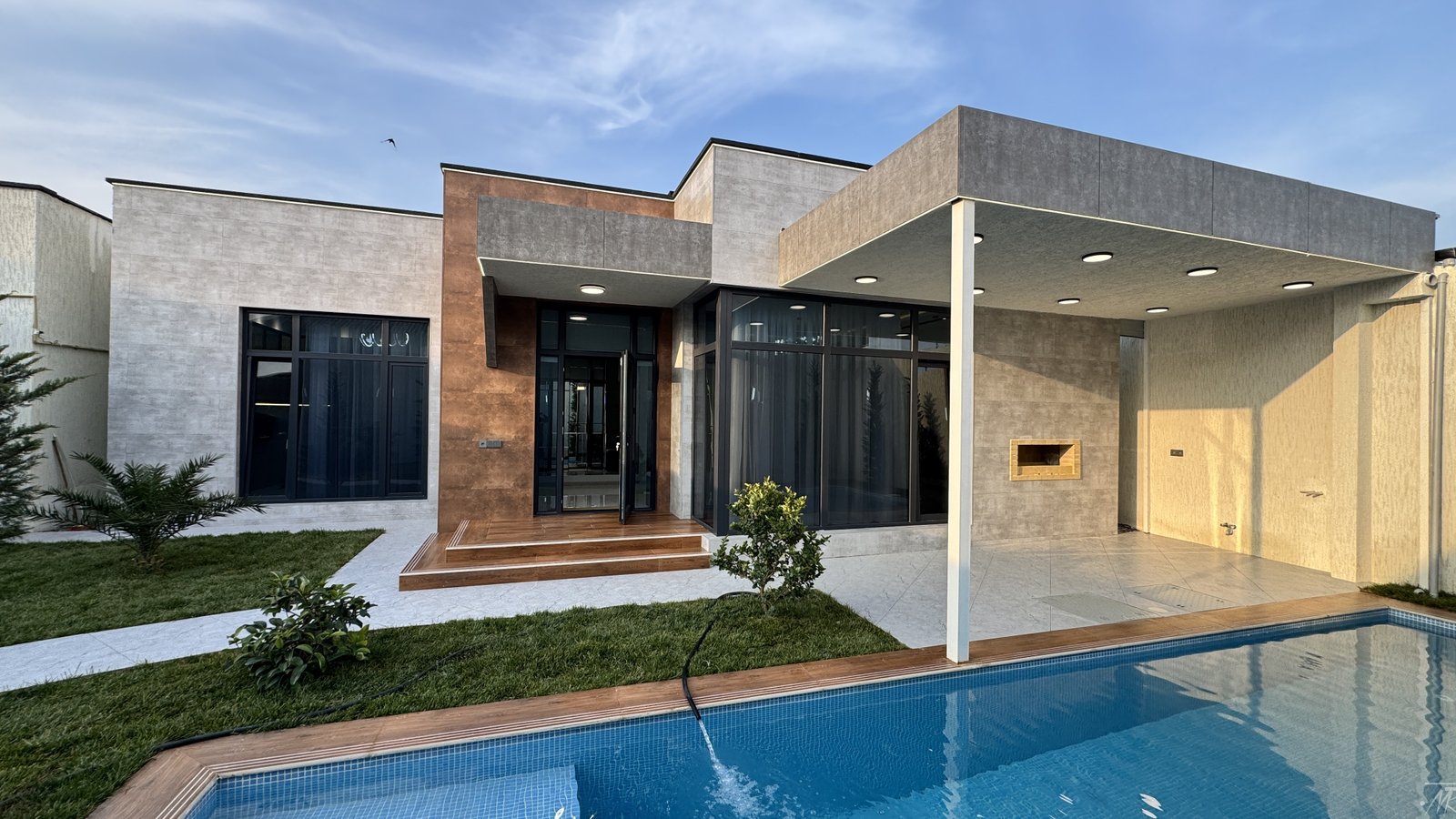 Merdekanda, Makaronnu fabrikin arxasinda, prestijli ve sakit erazide yerlesen bu yeni tikili modern bag evi hem yashayish, hem de istirahet ucun ideal secimdir. 3.5 sot torpaq sahesinde insa olunmus ev 295.000 AZN start qiymeti ile teklif olunur.