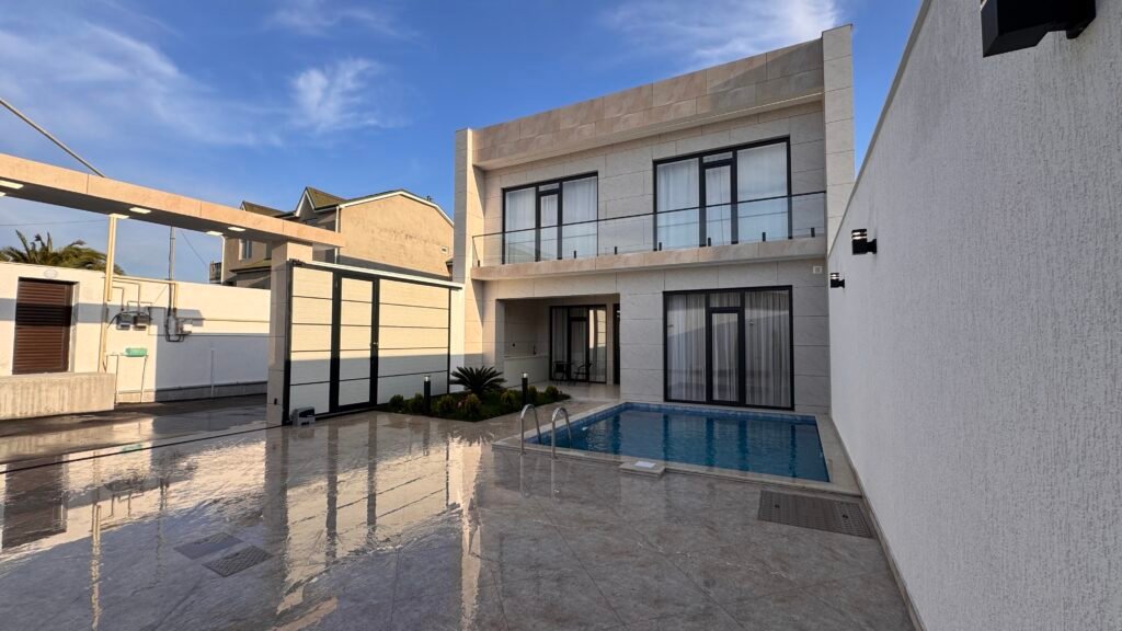 Merdekanda, Nelbeki restorani ile uzbeuz olan kucede yerlesen yeni 2 mertebeli, super temirli ve tam eshyali modern bag evi satilir. Ev zovqlu dizayni ve rahat planlamasi ile secilir.