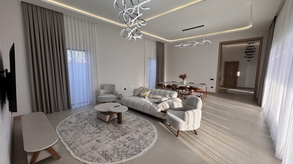 Bu villa rahat yashayis, zovqlu dizayn ve prestijli lokasiyani bir araya getirir. Hem daimi yashayis, hem de istirahet ucun mukemmel secimdir.