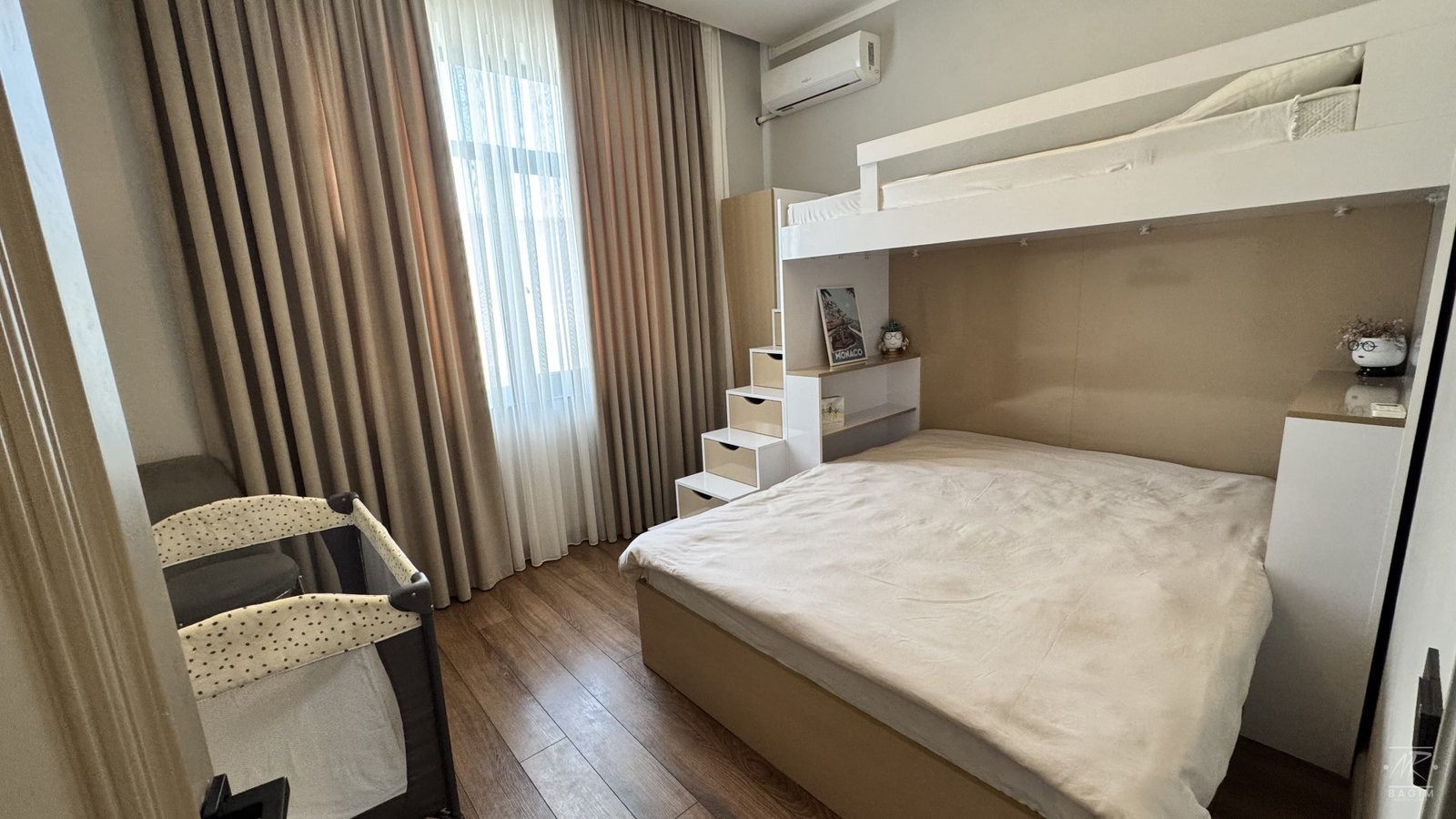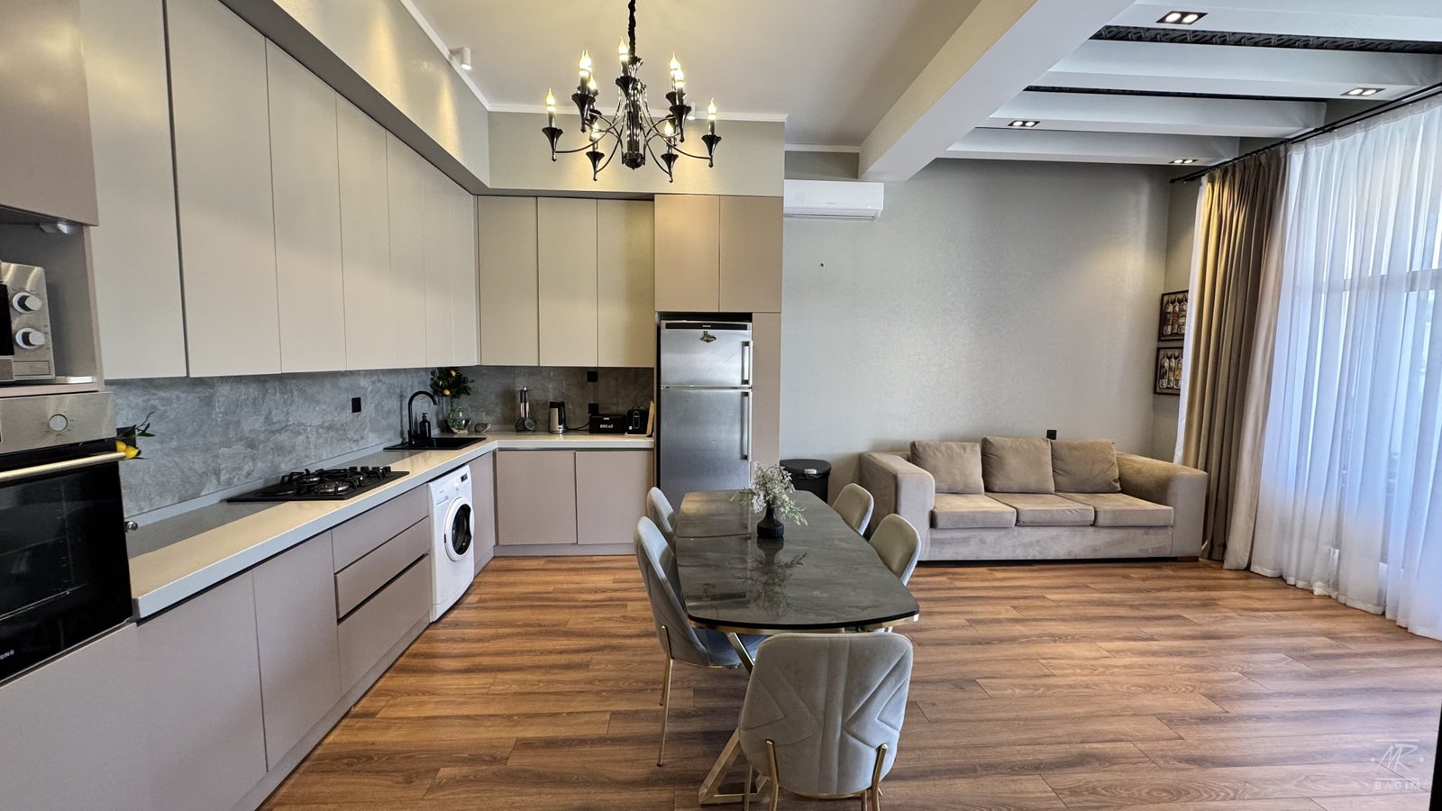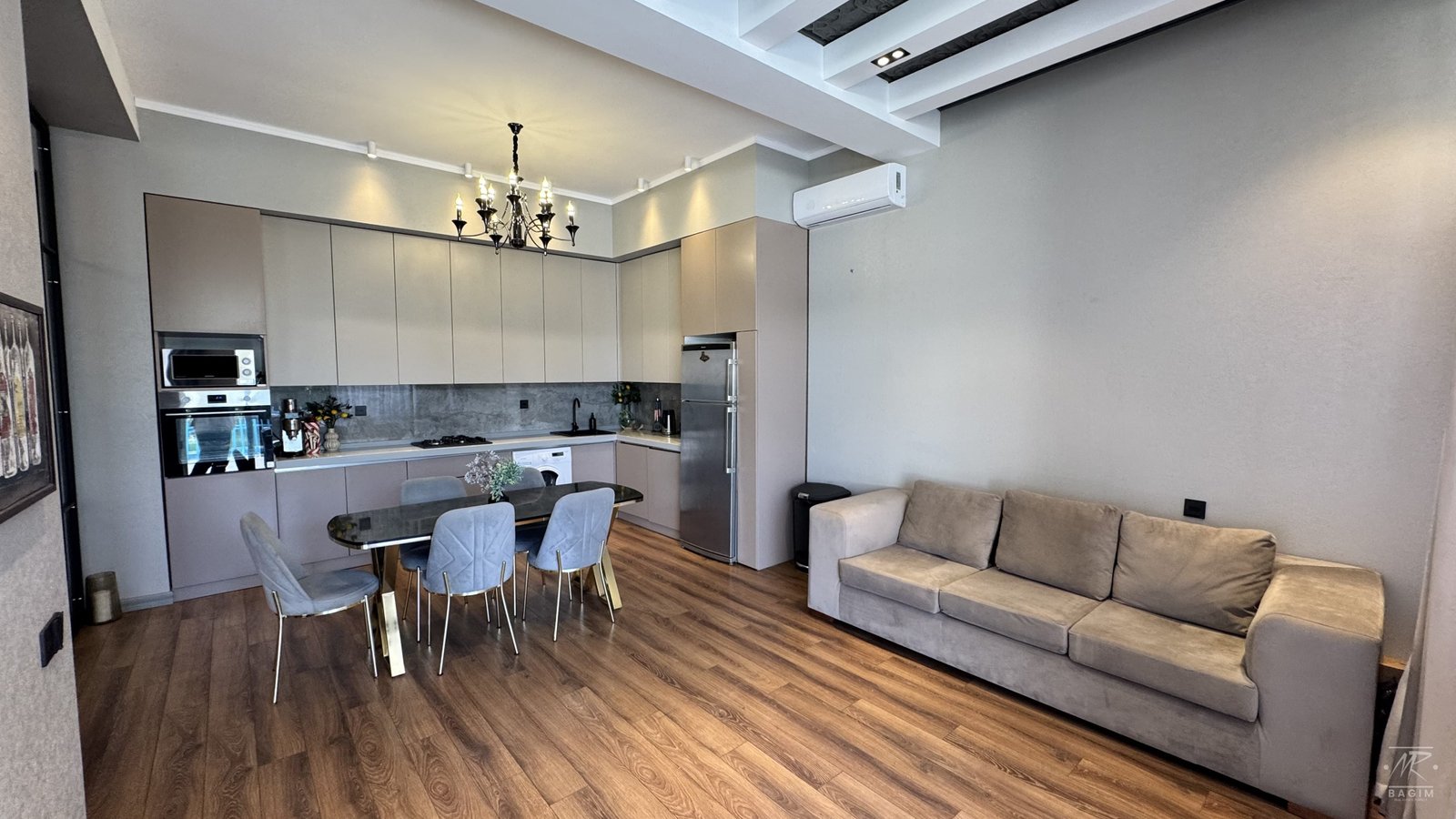 Isti dosheme sistemi, kombi ile isitme, tam hazir sanuzeller, dekorativ ishiqlandirma ve zerif interyer detallarina malikdir.