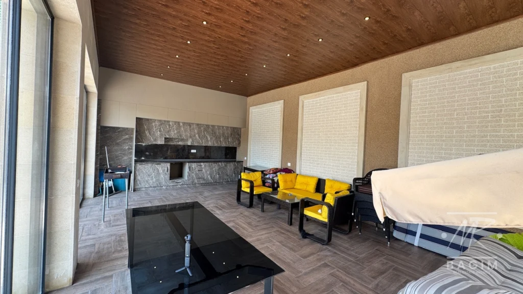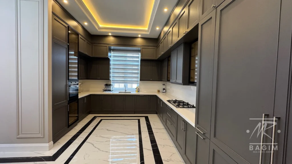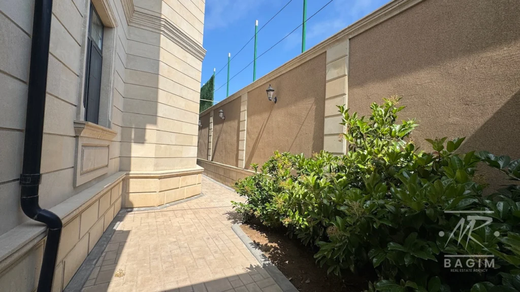 Yay mətbəxi 50 m² sahəni əhatə edir və kombi ilə qızdırılan isti döşəmə sistemi, həmçinin Almaniya istehsalı Cambalkonla tam bağlanmış vəziyyətdədir. Evin həyətində 5×10 ölçülü daşma tipli filterli hovuz, İP kamera müşahidə sistemi, müasir LED işıqlandırma, dekorativ yaşıllıqla örtülmüş hündür hasar, 3 maşınlıq 100 m² örtülü avtodayanacaq və Alman-İtaliya istehsalı tam avadanlıqlı qazanxana mövcuddur. Hal-hazırda ev tam şəkildə bahalı mebellərlə təchiz olunub.