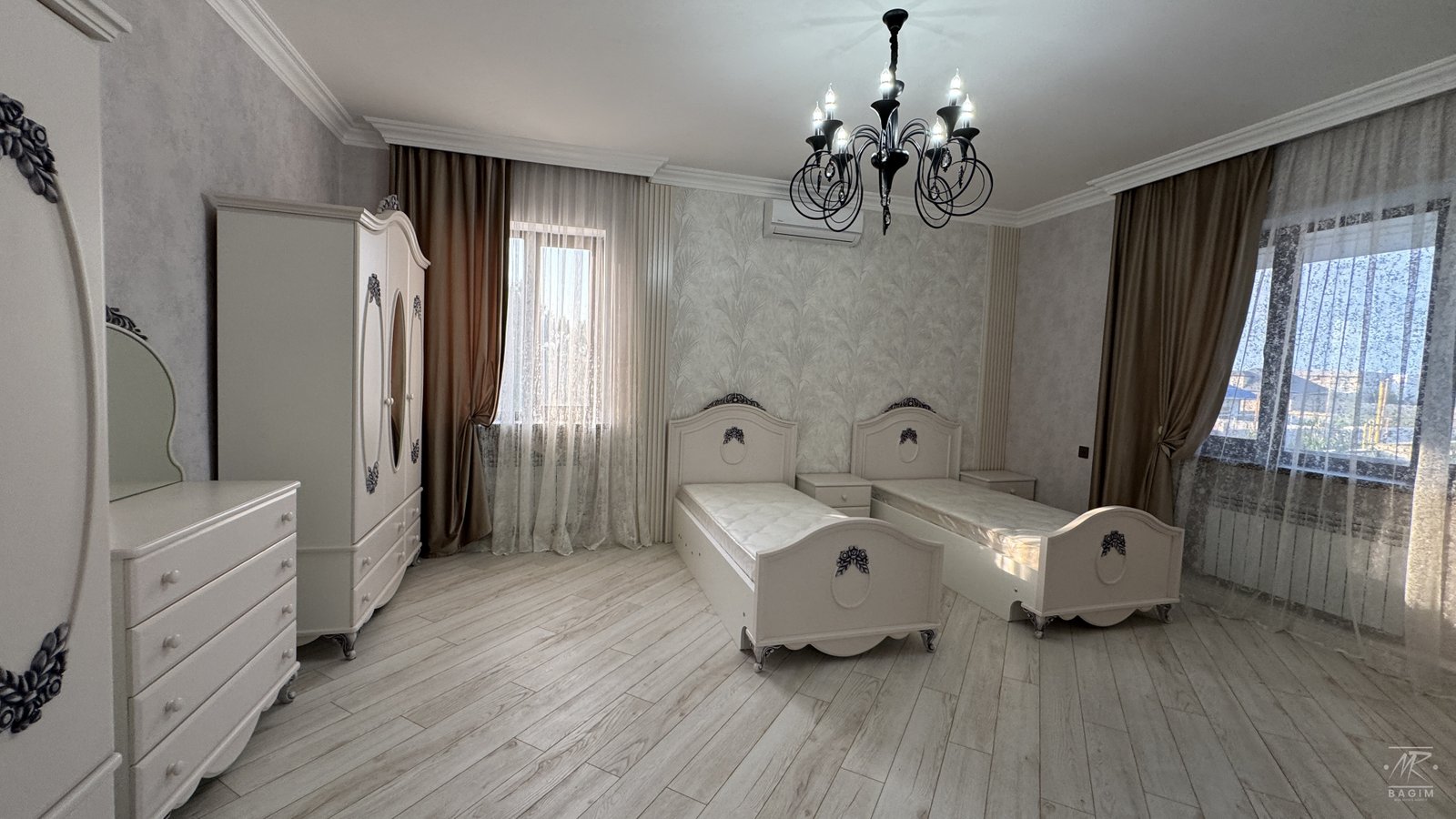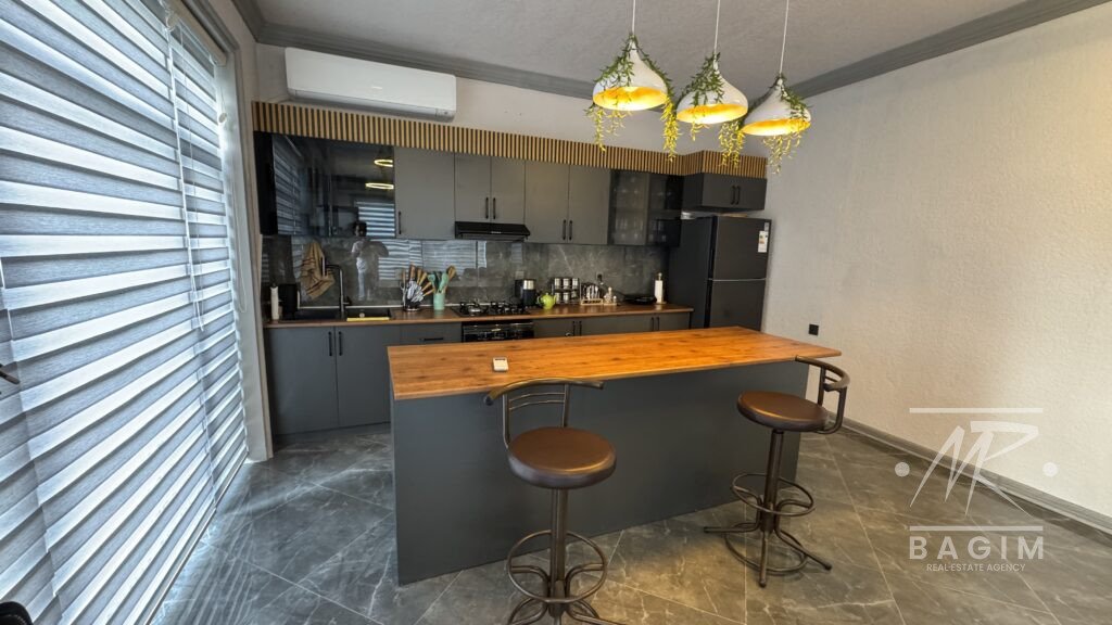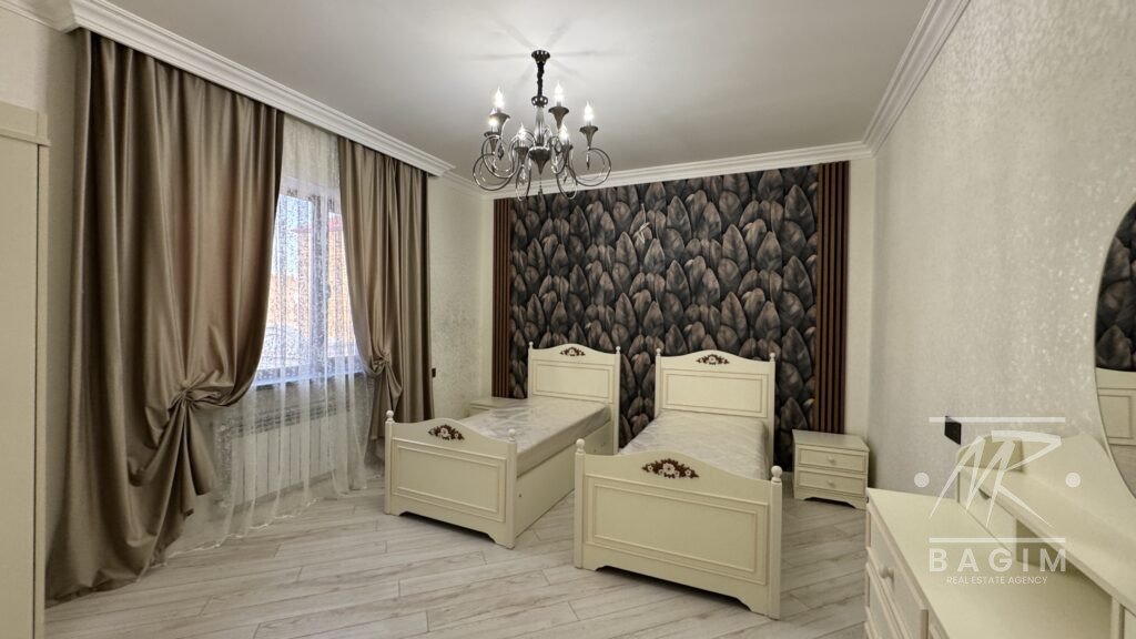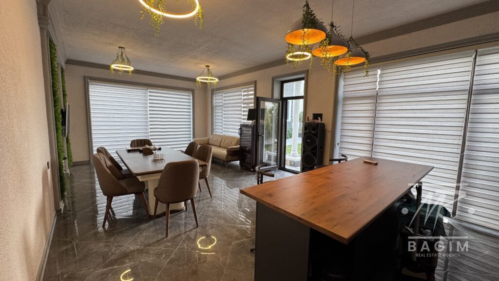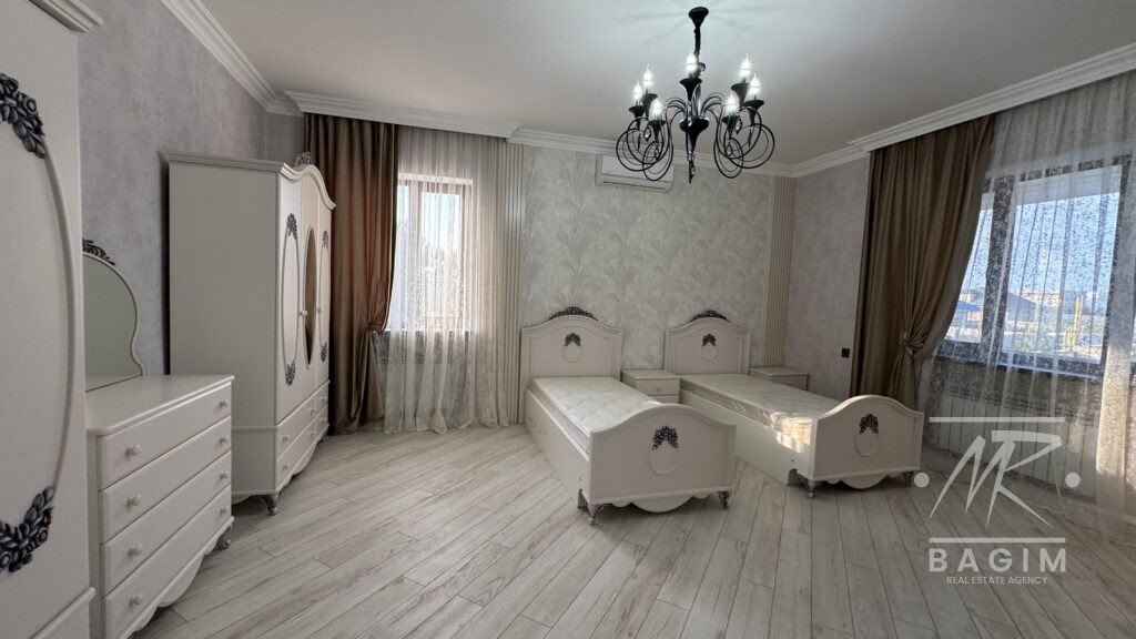 Ümumi sahəsi 400 m² olan 2 mərtəbəli villa 8 sot torpaq üzərində inşa edilib. Geniş zal, 5 yataq otağı, 5 hamam otağı, tam təchizatlı mətbəx, ayrıca camaşırxana və rahat planlaşdırma mövcuddur. Evin bütün otaqları kondisionerlərlə təchiz olunub və mebellərlə birlikdə satışa təqdim olunur.