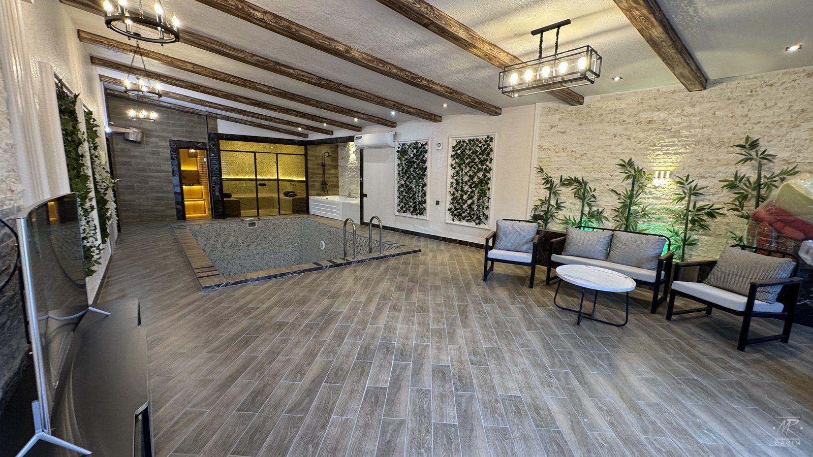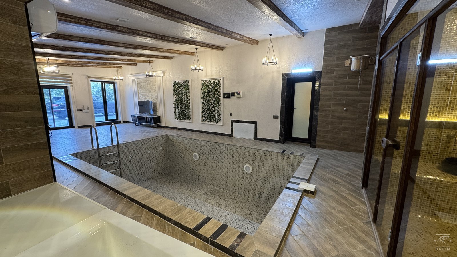 Villada xüsusi spa zona, türk hamamı və sauna ilə yüksək komfort təmin olunub. Rahatlıq və istirahət üçün nəzərdə tutulmuş bu zona ailəvi istifadə üçün ideal seçimdir.